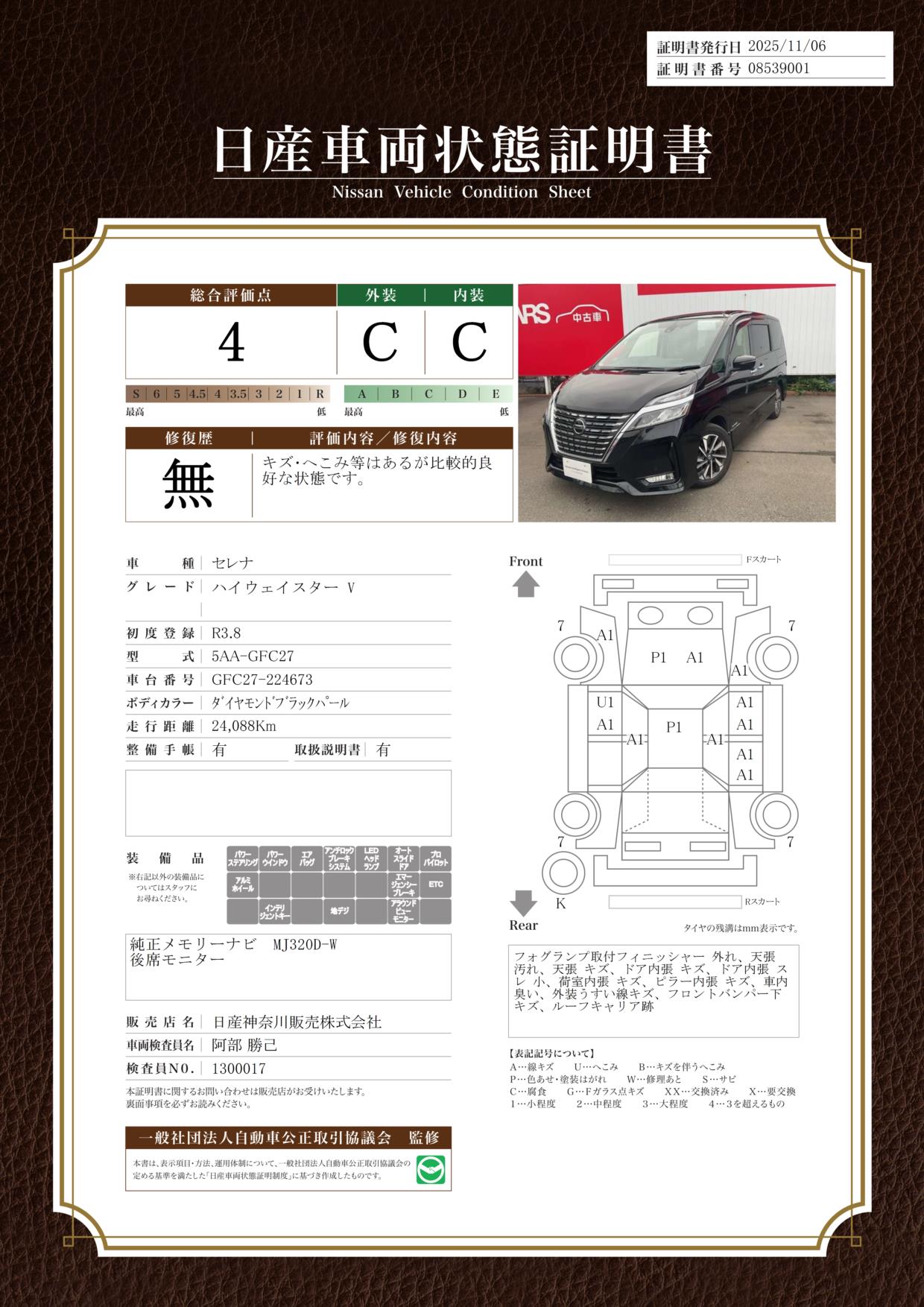 1.4 e-4ORCE ハイウェイスターV 4WD 試乗車・AWINエアロ・ニッサンコネクトナビ
