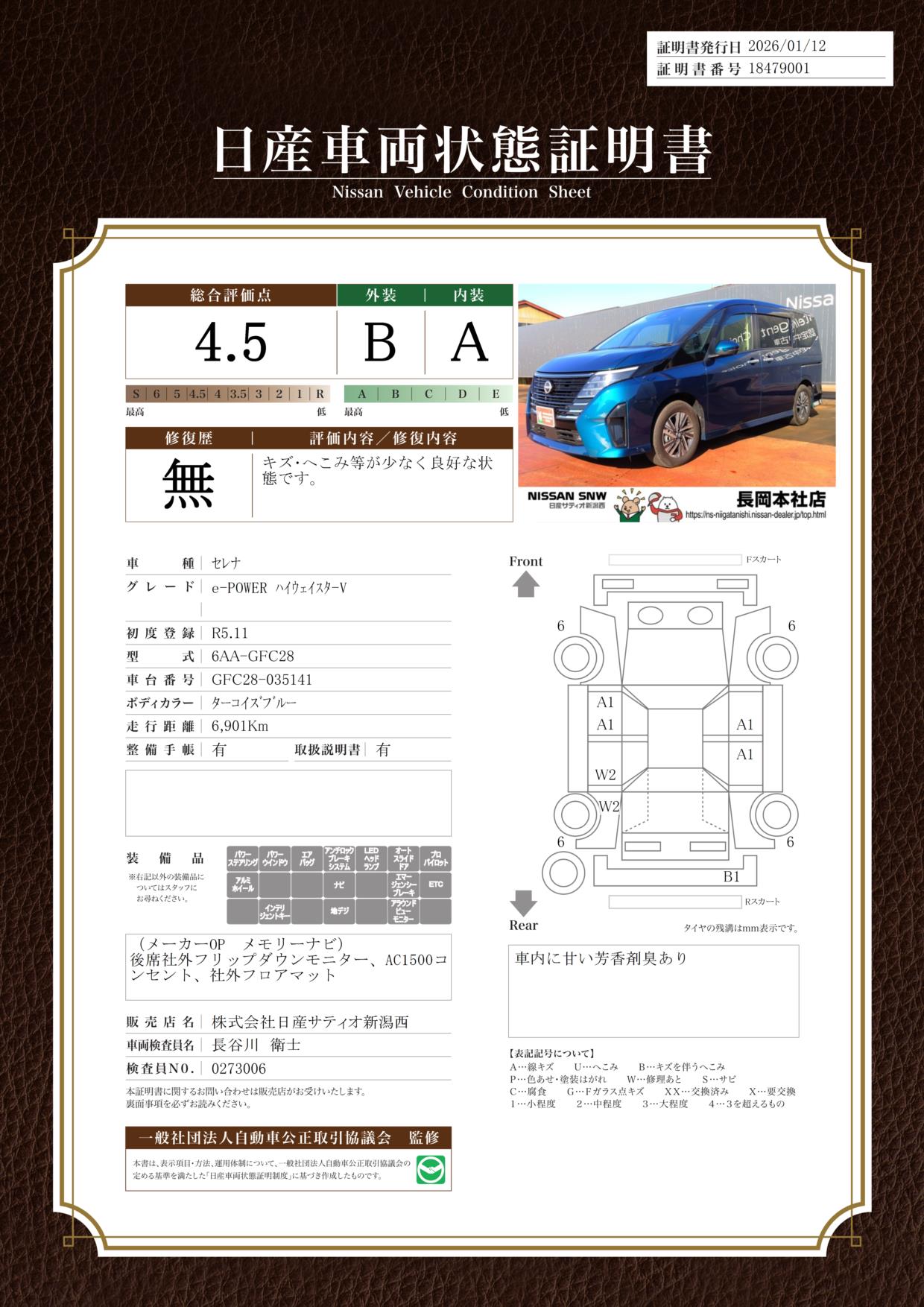 評価機関 : 日産車両状態証明