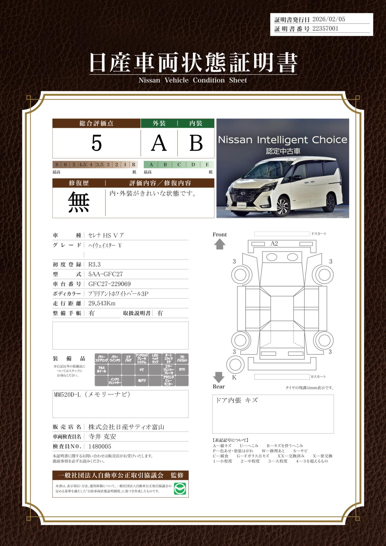 セレナ 1400cc 1.4 e-POWER ハイウェイスターV 当社社有車