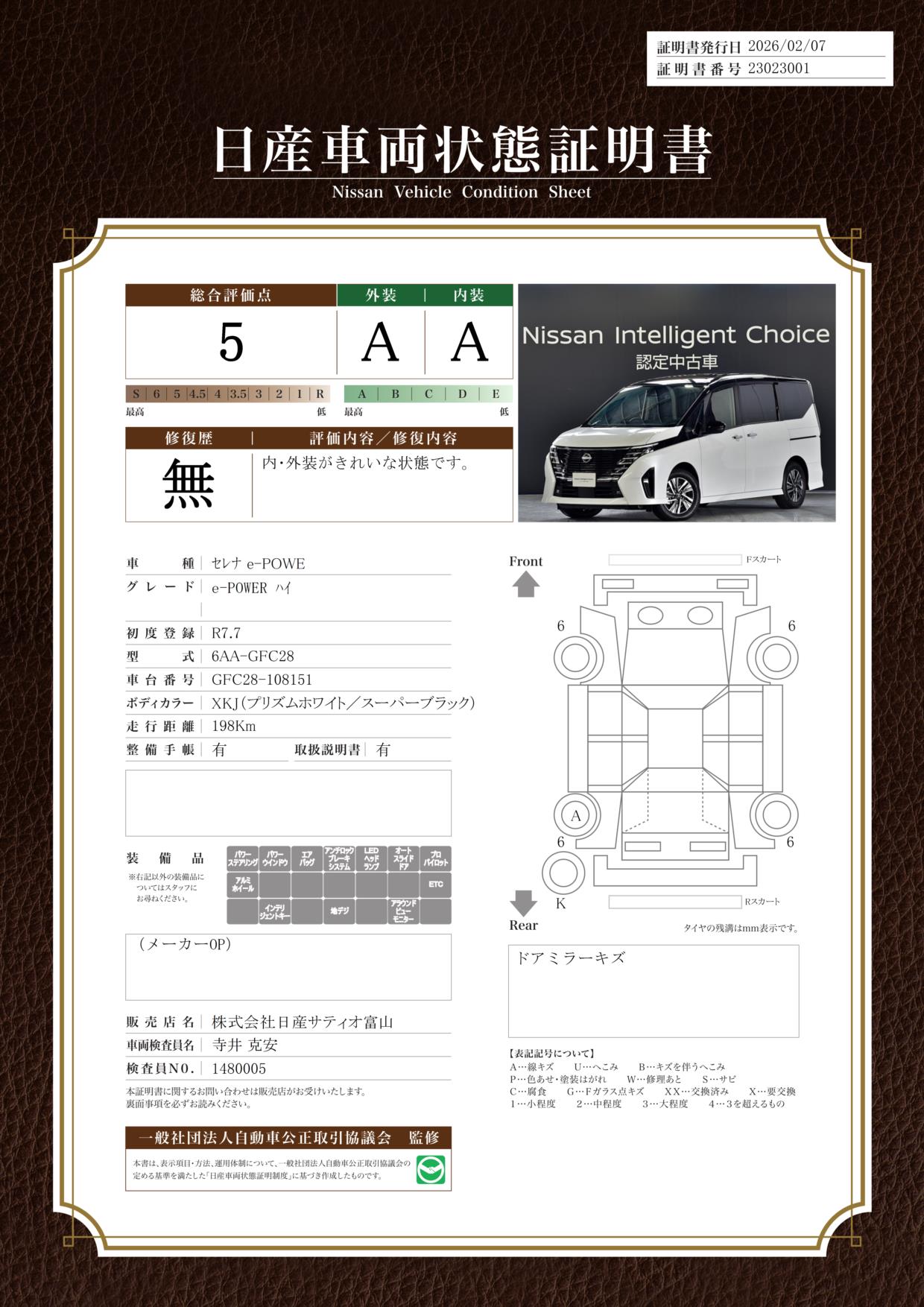 セレナ 1400cc 1.4 e-POWER ハイウェイスターV 当社社有車