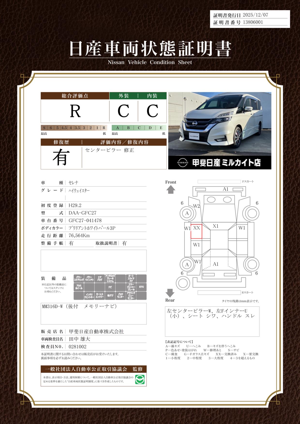 納車時に定期点検整備(費用は車両価格に含まれます。)