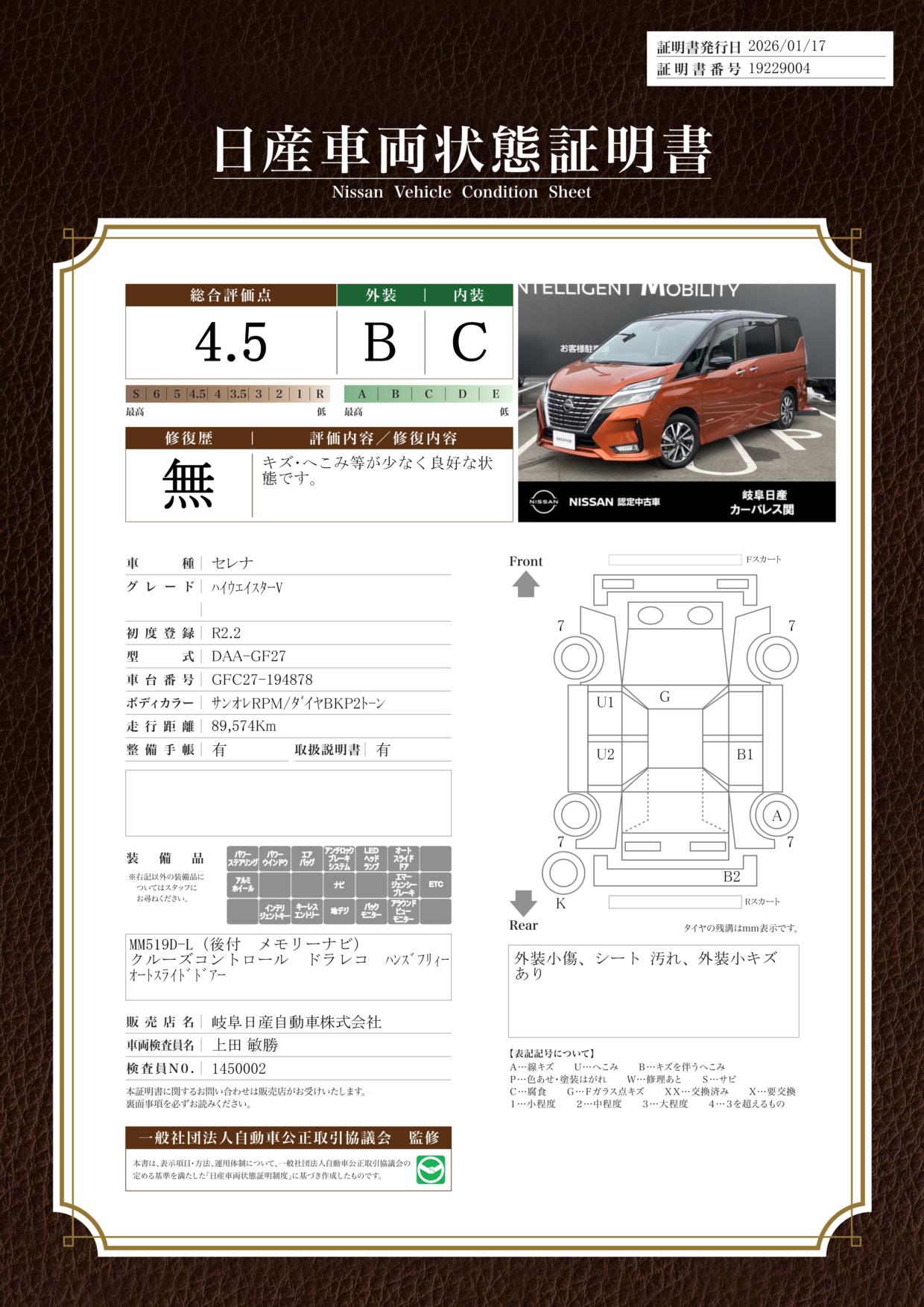 セレナ 1400cc 1.4 e-4ORCE ハイウェイスターV 4WD 雹害車 メーカー装着メモリーナビ