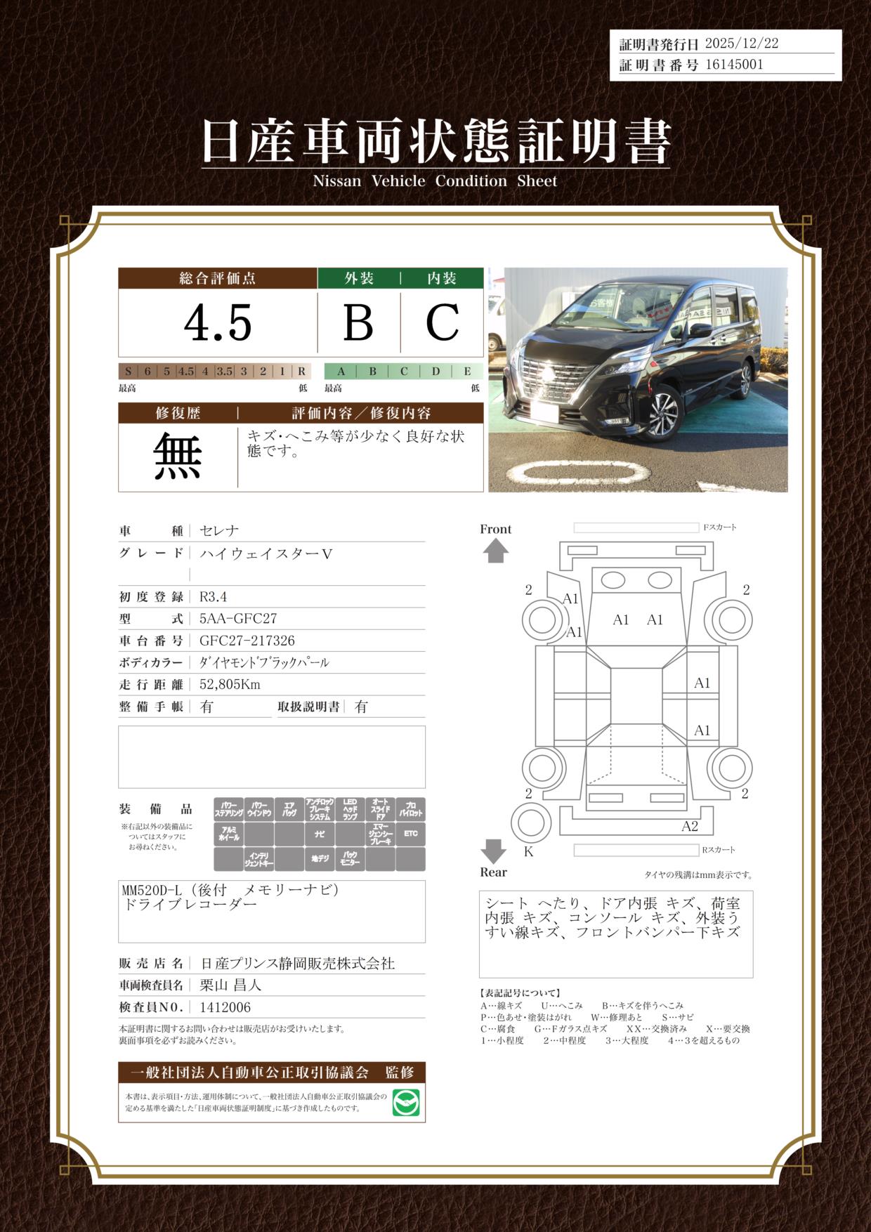 現状括弧書き内の年月まで車検有効期限が残っていますが、ご成約時に新しく車検を取り直します。なお取り直しの費用は車両価格に含まれています。