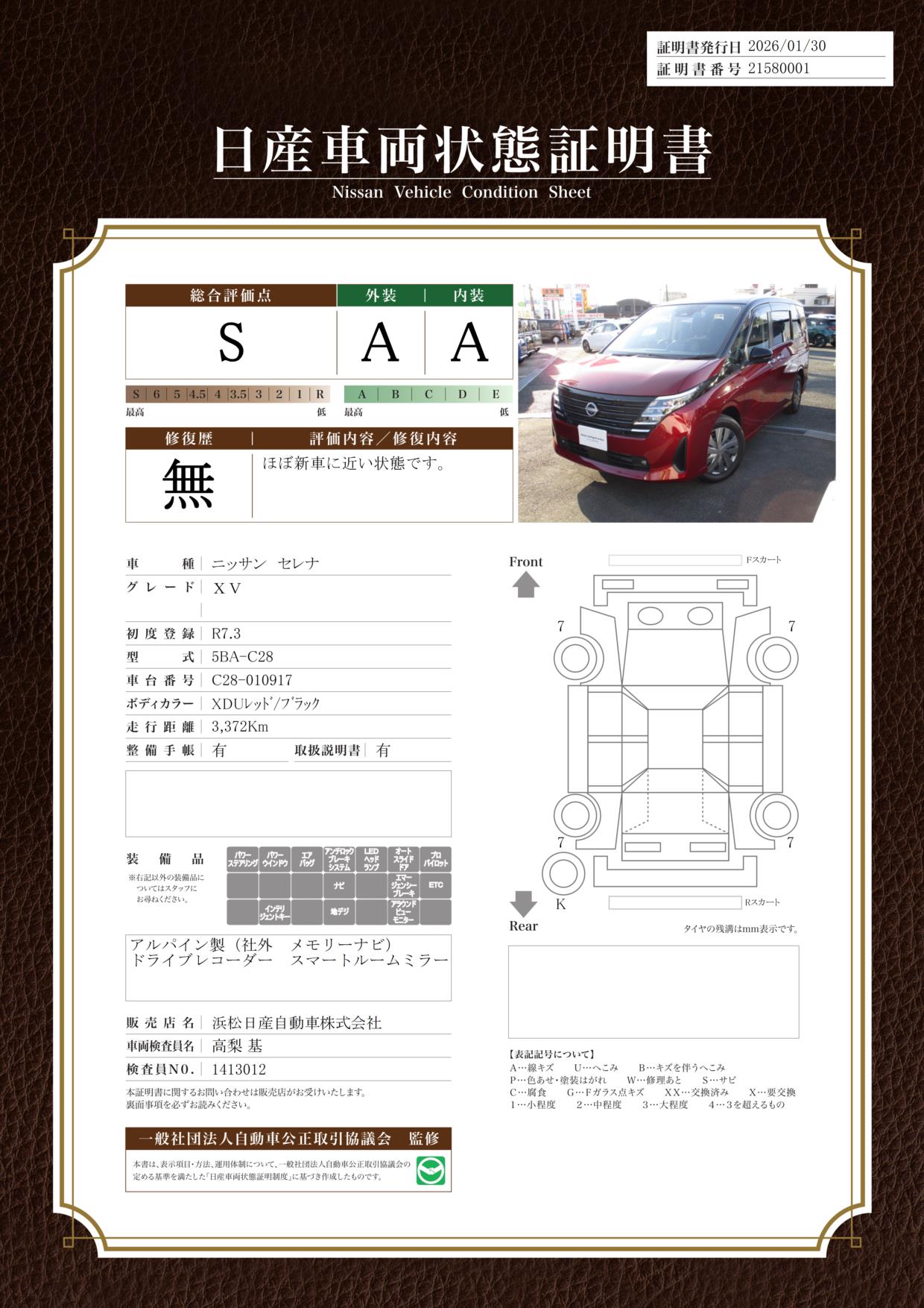現状括弧書き内の年月まで車検有効期限が残っていますが、ご成約時に新しく車検を取り直します。なお取り直しの費用は車両価格に含まれています。