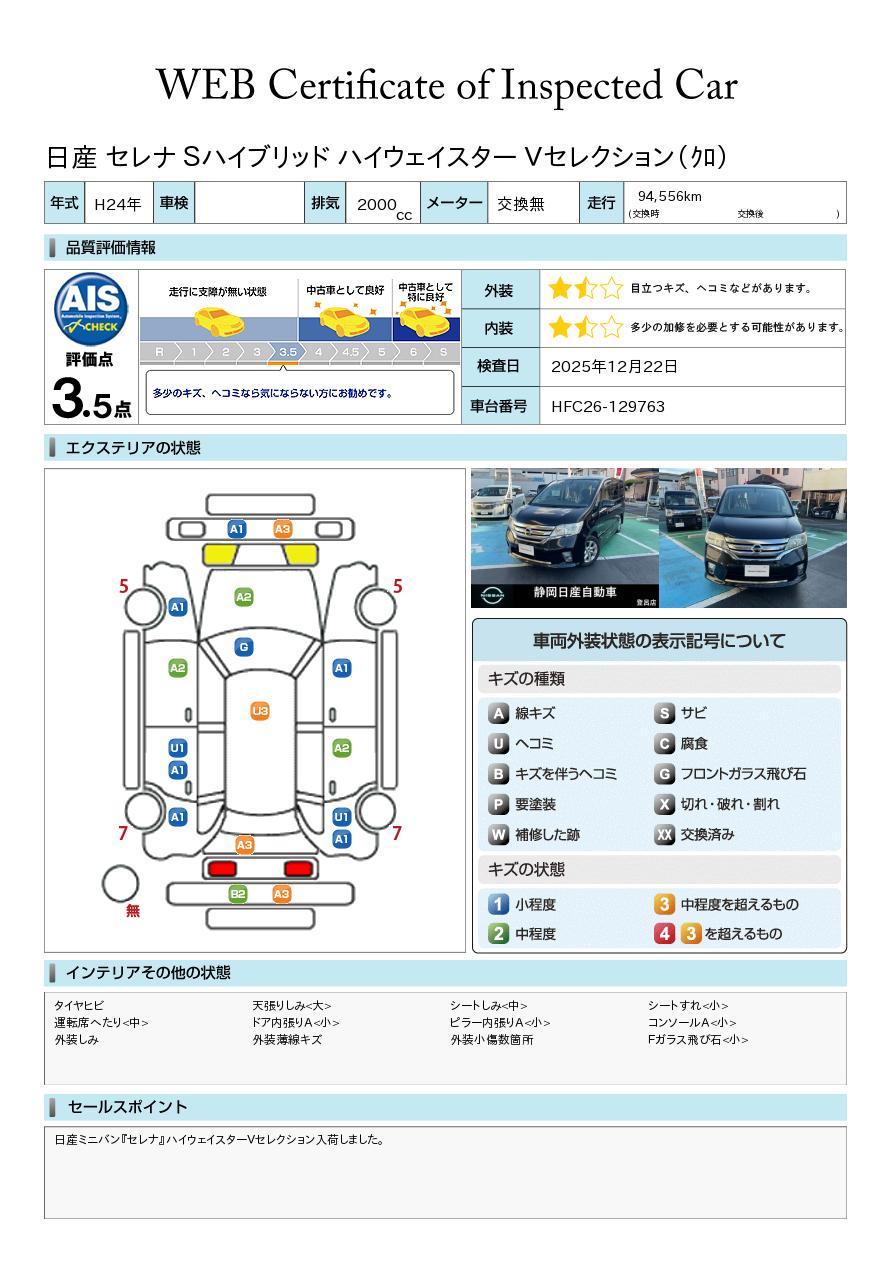 日産ミニバン『セレナ』ハイウェイスターVセレクション入荷しました。当店管理顧客様の下取車です。アフターメンテナンスもお付き合い頂ける方にお使いいただきたい1台です。