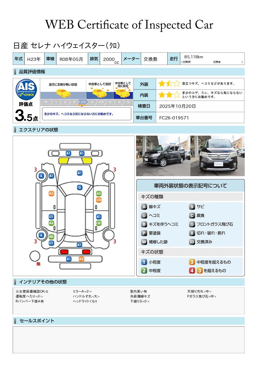 納車時に定期点検整備(費用は車両価格に含まれます。)