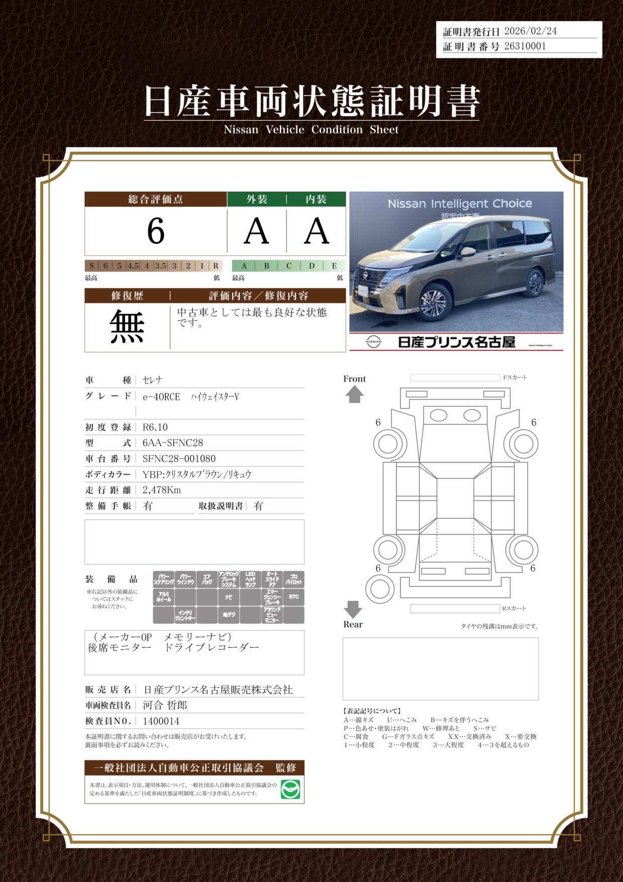 「車両状態証明書」は、査定協会監修のプロの検査員が公正かつ確かな基準で検査した”安心の証”です。