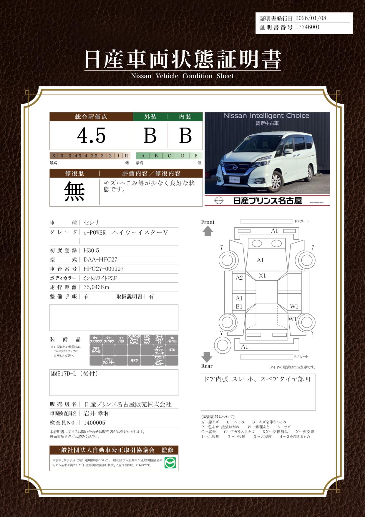 現状括弧書き内の年月まで車検有効期限が残っていますが、ご成約時に新しく車検を取り直します。なお取り直しの費用は車両価格に含まれています。
