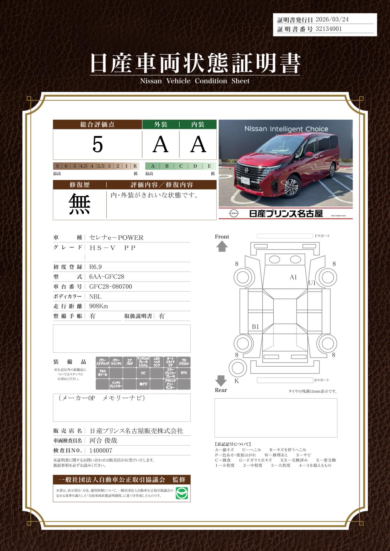 「車両状態証明書」は、査定協会監修のプロの検査員が公正かつ確かな基準で検査した”安心の証”です。