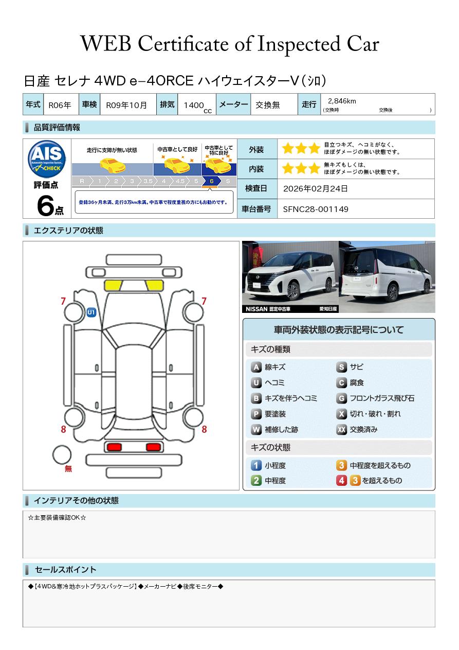 「車両状態証明書」は、査定協会監修のプロの検査員が公正かつ確かな基準で検査した”安心の証”です。