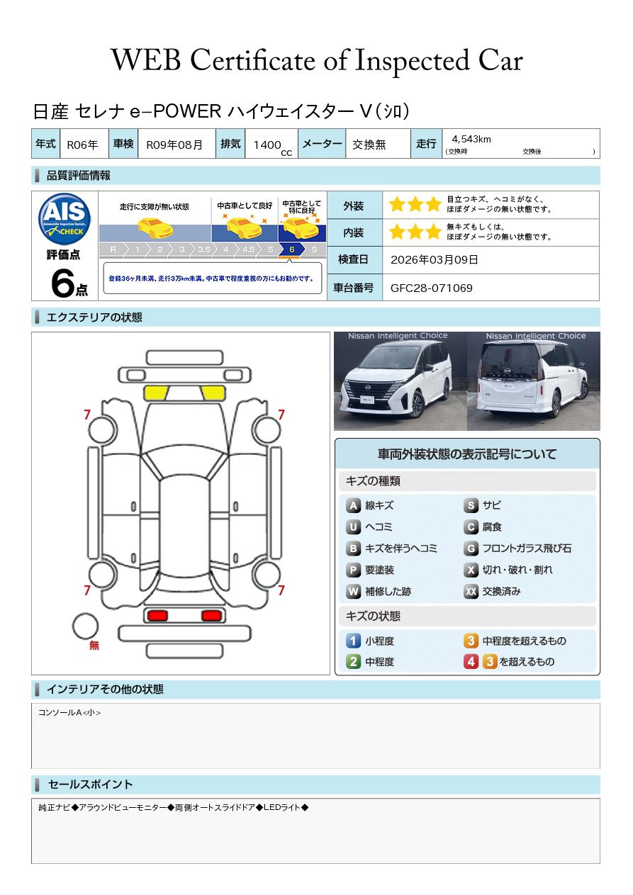 「車両状態証明書」は、査定協会監修のプロの検査員が公正かつ確かな基準で検査した”安心の証”です。