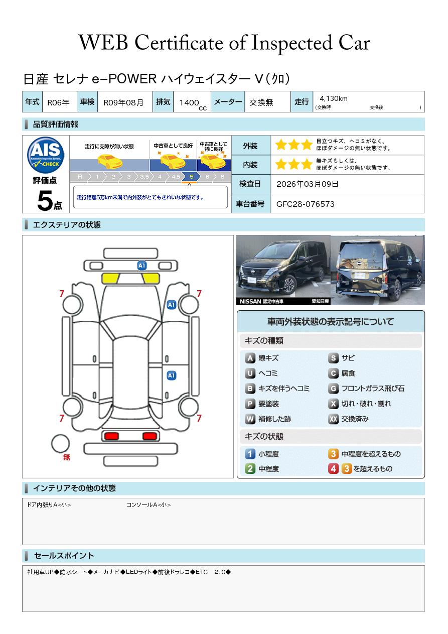「車両状態証明書」は、査定協会監修のプロの検査員が公正かつ確かな基準で検査した”安心の証”です。