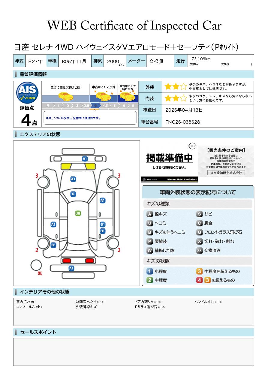 セレナ 1400cc 1.4 e-4ORCE ハイウェイスターV 4WD 防水シート/AWINエアロ/寒冷地仕様