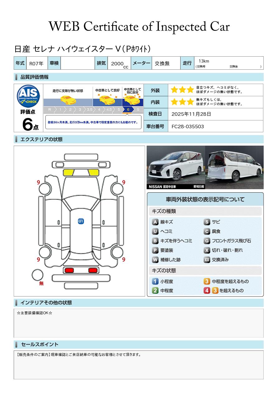 【販売条件のご案内】現車確認とご来店納車の可能なお客様とさせて頂きます。ひょう害車両【走行距離13km】