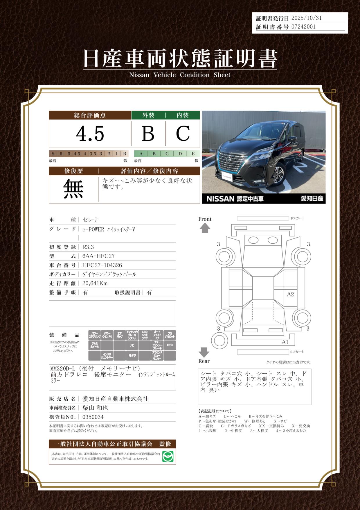 日産プレミアム認定中古車 e-POWER プロパイロット