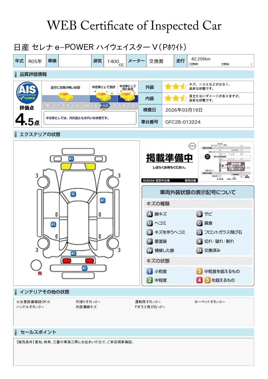 セレナ 1400cc 1.4 e-POWER ハイウェイスターV 当社社用車/AWINエアロ/プロパイロット/後
