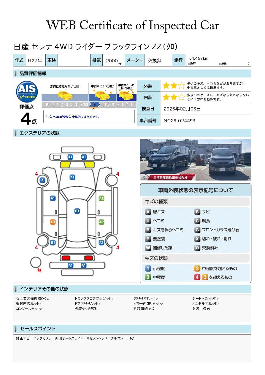 現状括弧書き内の年月まで車検有効期限が残っていますが、ご成約時に新しく車検を取り直します。なお取り直しの費用は車両価格に含まれています。