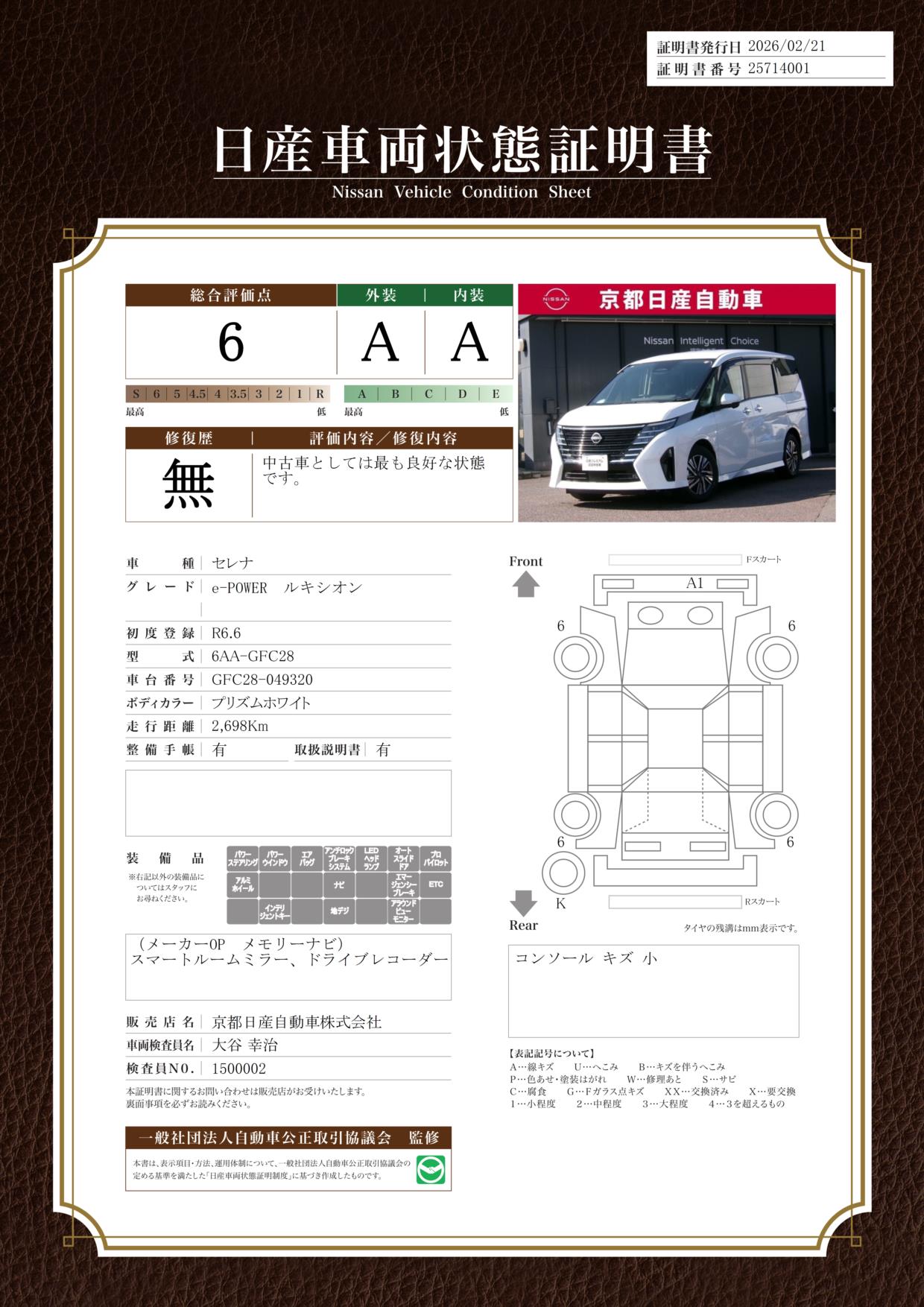 試乗車アッププロパイロットNCナビ全方位カメラドラレコETC当店では、ご安心頂く為に、ご来店頂きお車のご確認をおススメしております。