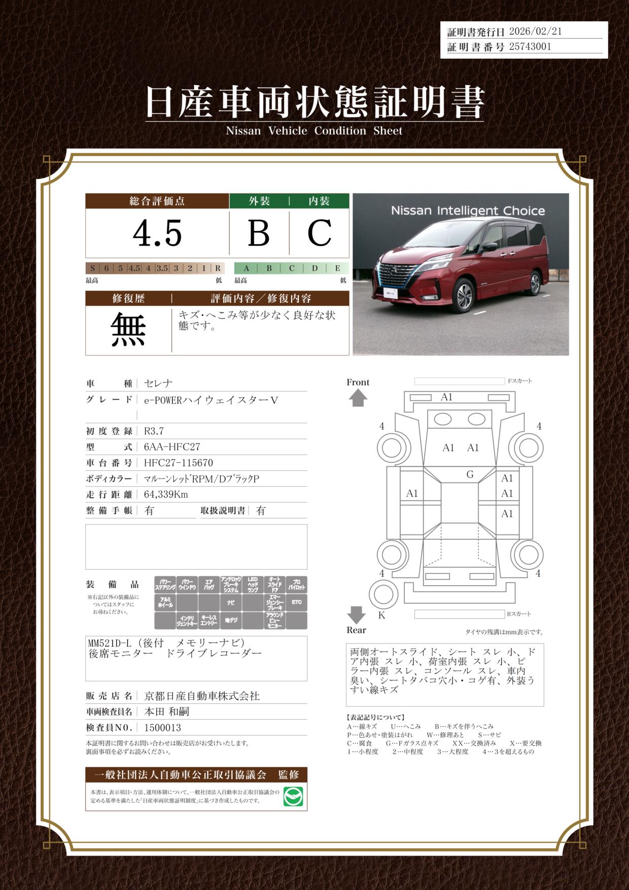 京都日産自動車『日産カーパレス伏見店』です!! 当店では1度ご来店頂いて実際にお車をご確認頂いていただける方に販売させていただいております、ご了承下さい。 ご来店の際は事前に在庫・商談状況の確認をお願いします。 ●日産ディーラーで買うおススメポイント! 日産の販売店の中古車には全社無料で「ワイド保証」が付いております。(一部加入が出来ない車両もございます。)