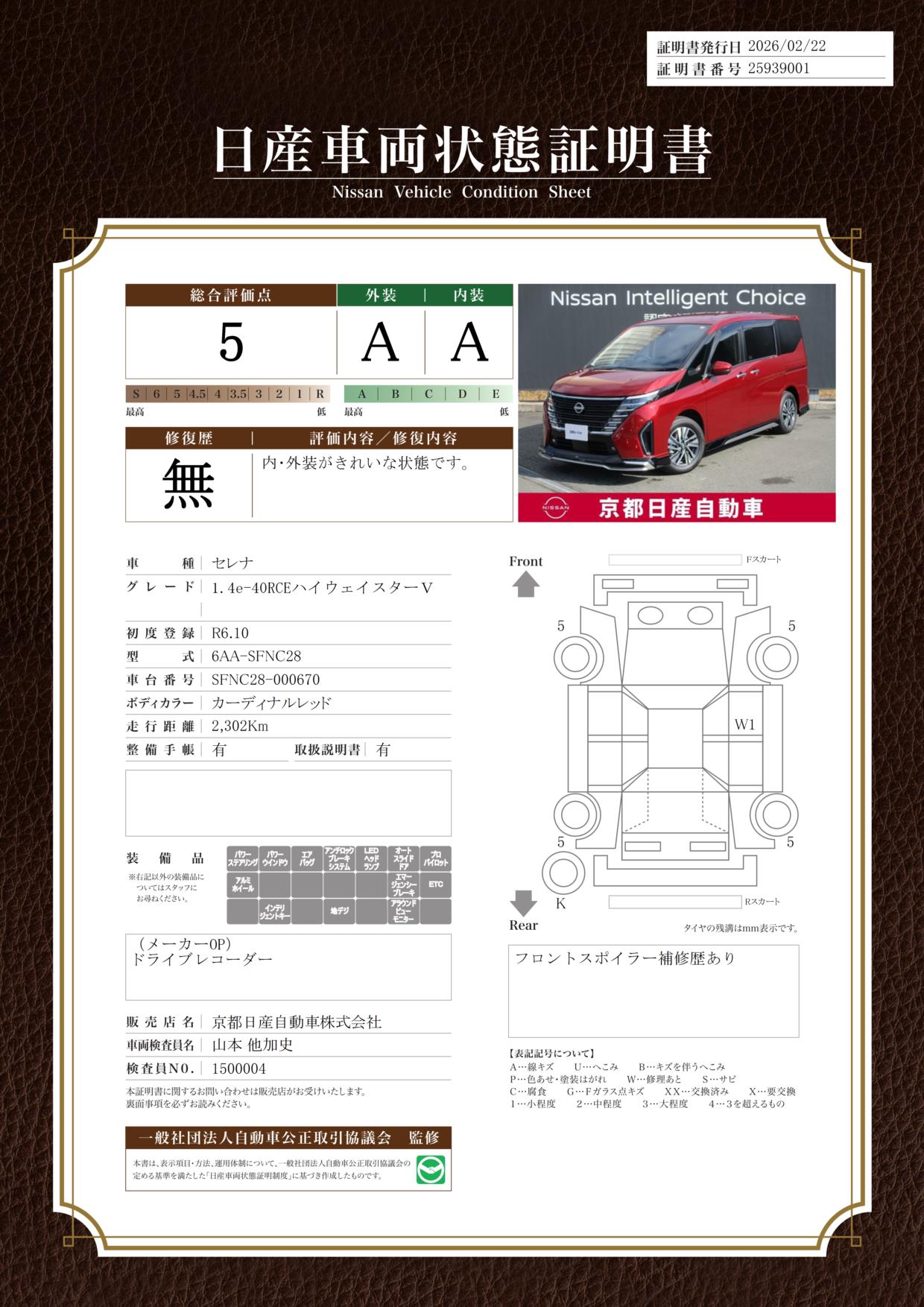 購入から2年間、走行距離無制限で保証。