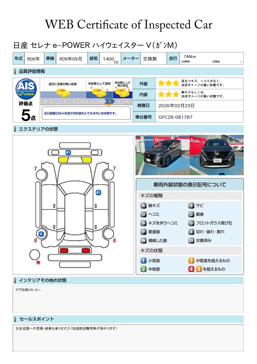 「車両状態証明書」は、査定協会監修のプロの検査員が公正かつ確かな基準で検査した”安心の証”です。