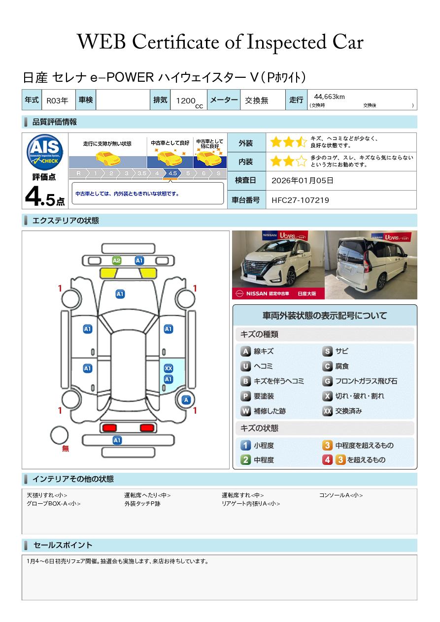 日産プレミアム認定中古車 e-POWER プロパイロット