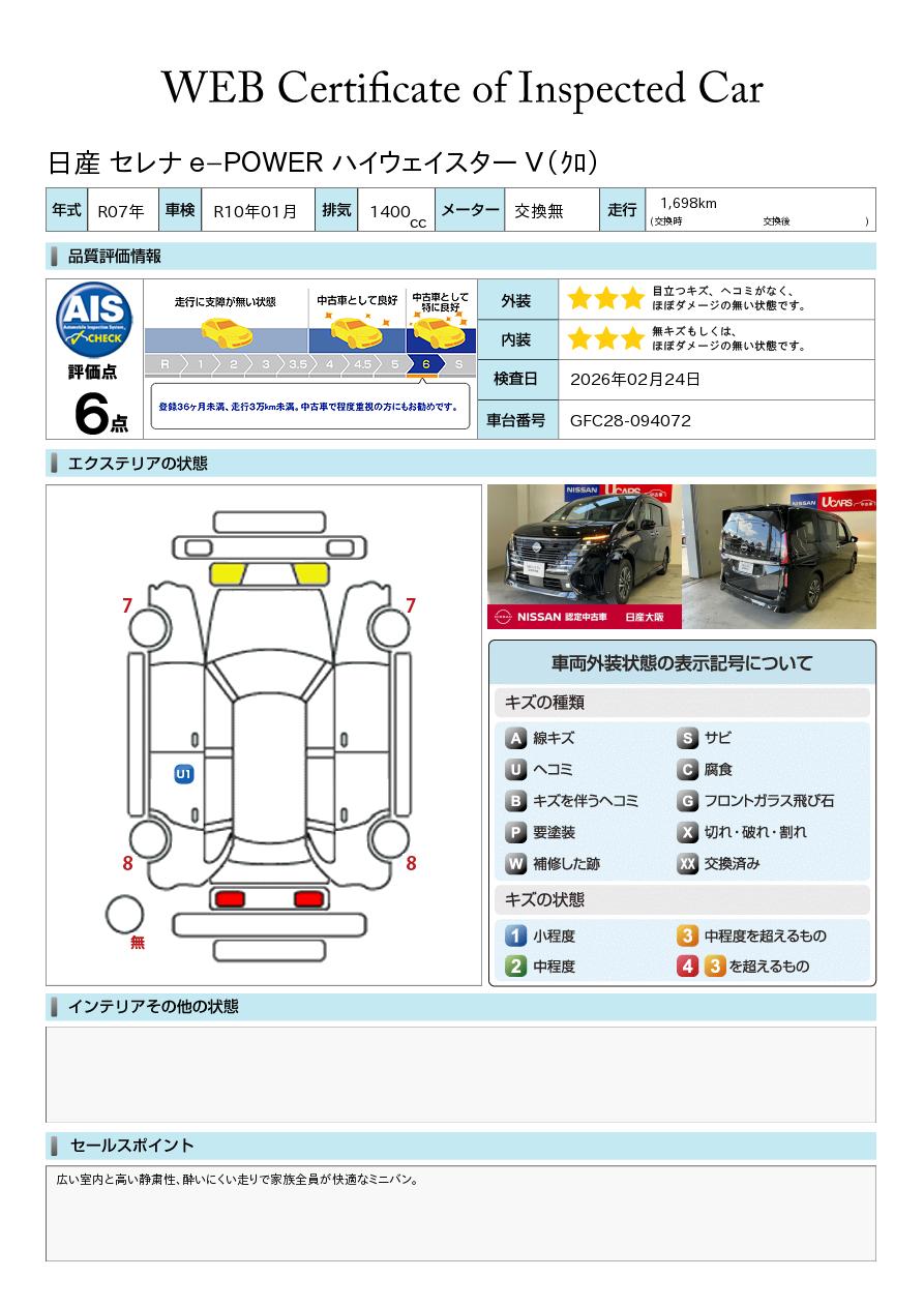「車両状態証明書」は、査定協会監修のプロの検査員が公正かつ確かな基準で検査した”安心の証”です。
