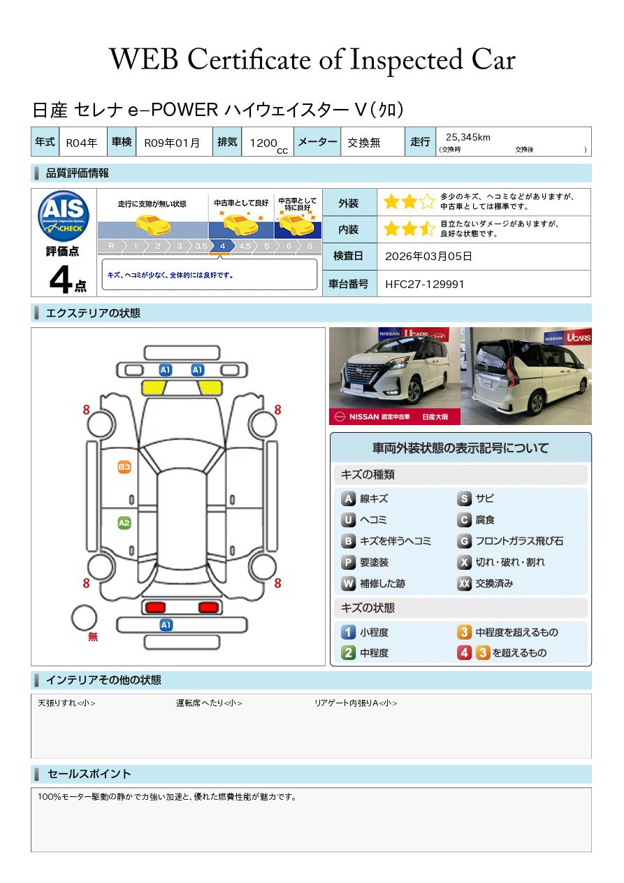 100%モーター駆動の静かで力強い加速と、優れた燃費性能が魅力です。当店のお車はトラブル防止の為、一度のご来店をお願いしております。