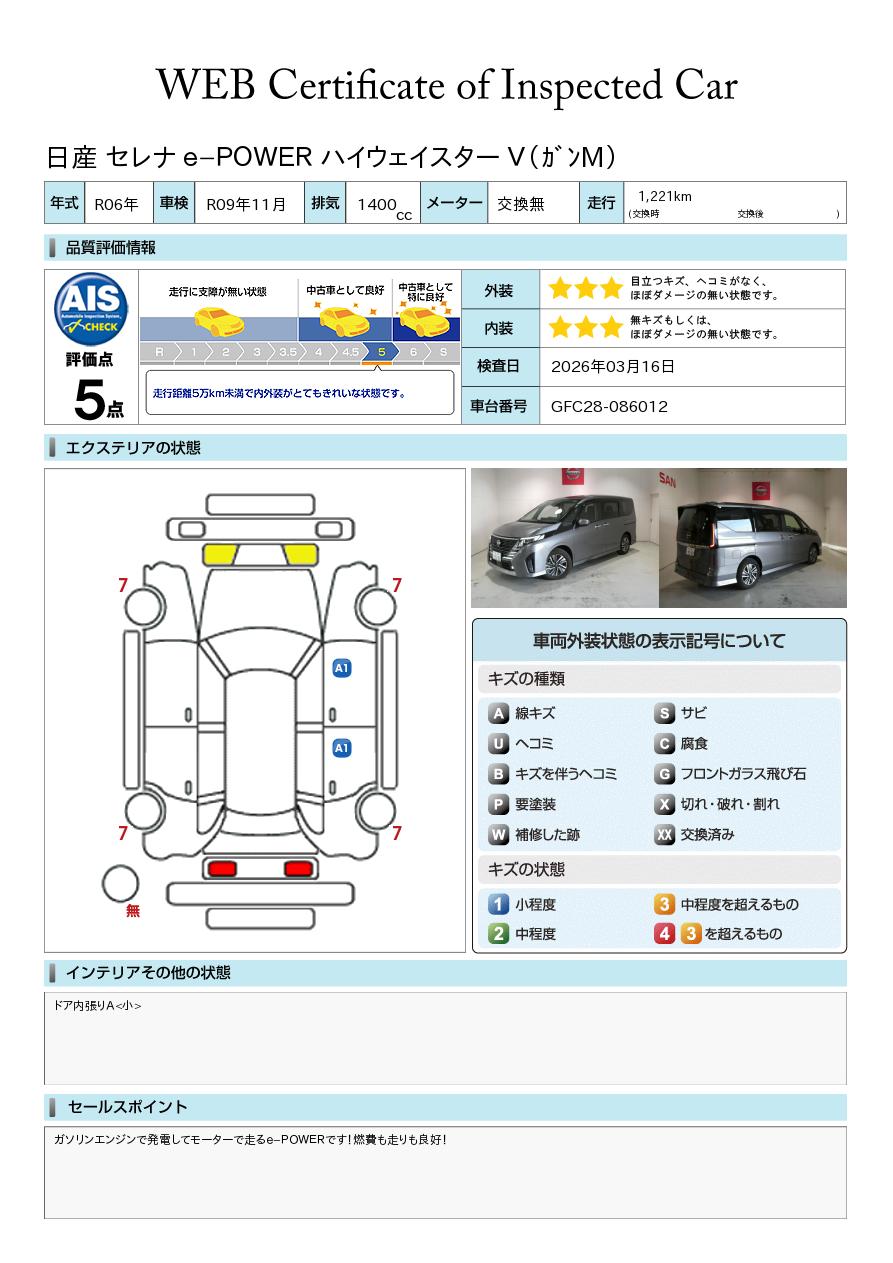 「車両状態証明書」は、査定協会監修のプロの検査員が公正かつ確かな基準で検査した”安心の証”です。