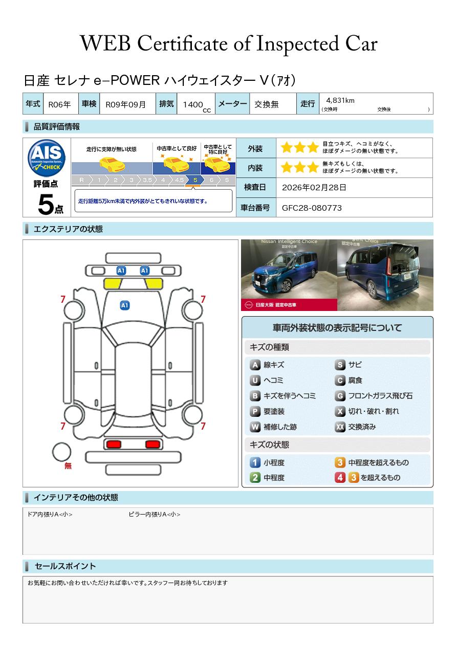 「車両状態証明書」は、査定協会監修のプロの検査員が公正かつ確かな基準で検査した”安心の証”です。