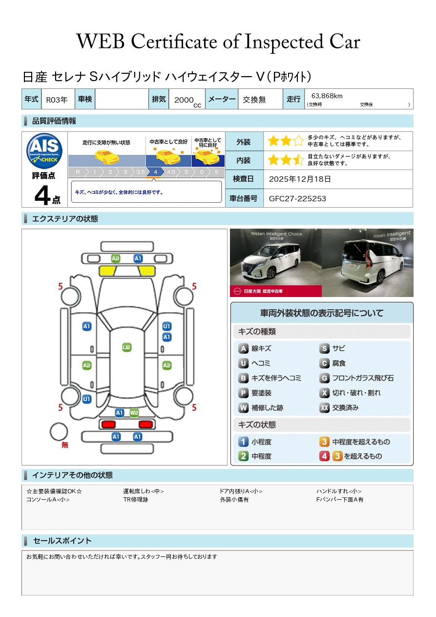 現状括弧書き内の年月まで車検有効期限が残っていますが、ご成約時に新しく車検を取り直します。なお取り直しの費用は車両価格に含まれています。