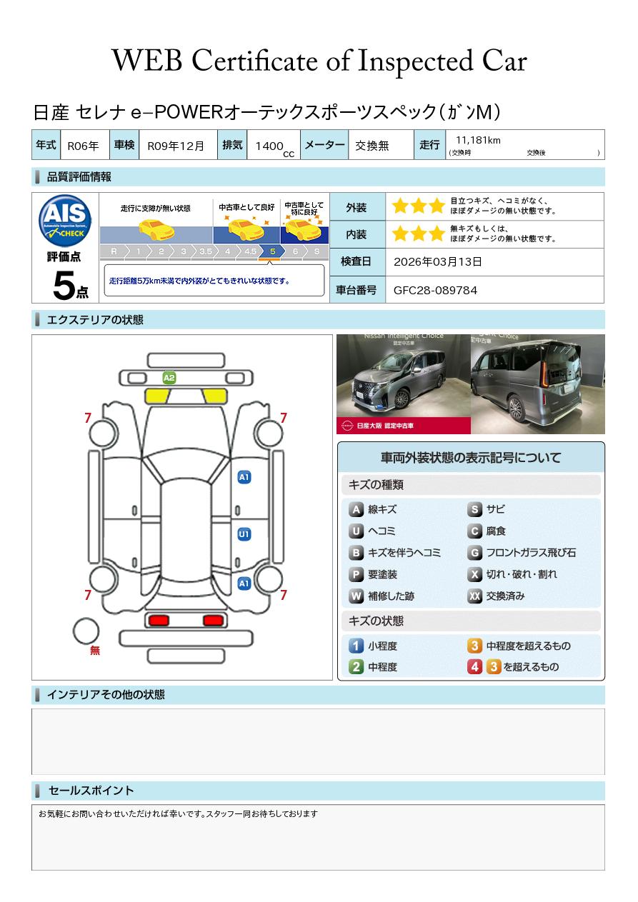 「車両状態証明書」は、査定協会監修のプロの検査員が公正かつ確かな基準で検査した”安心の証”です。