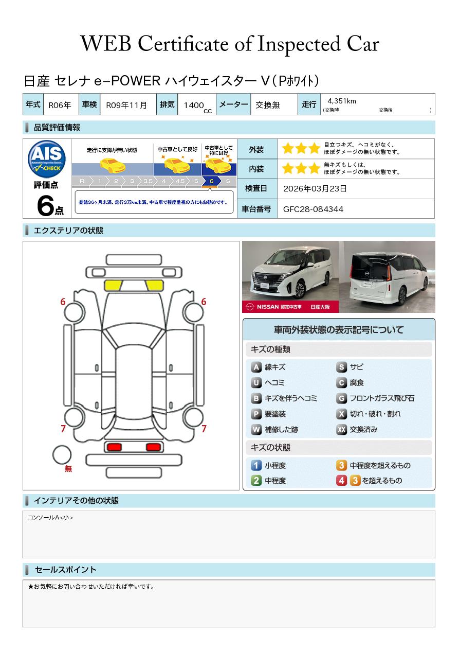 「車両状態証明書」は、査定協会監修のプロの検査員が公正かつ確かな基準で検査した”安心の証”です。