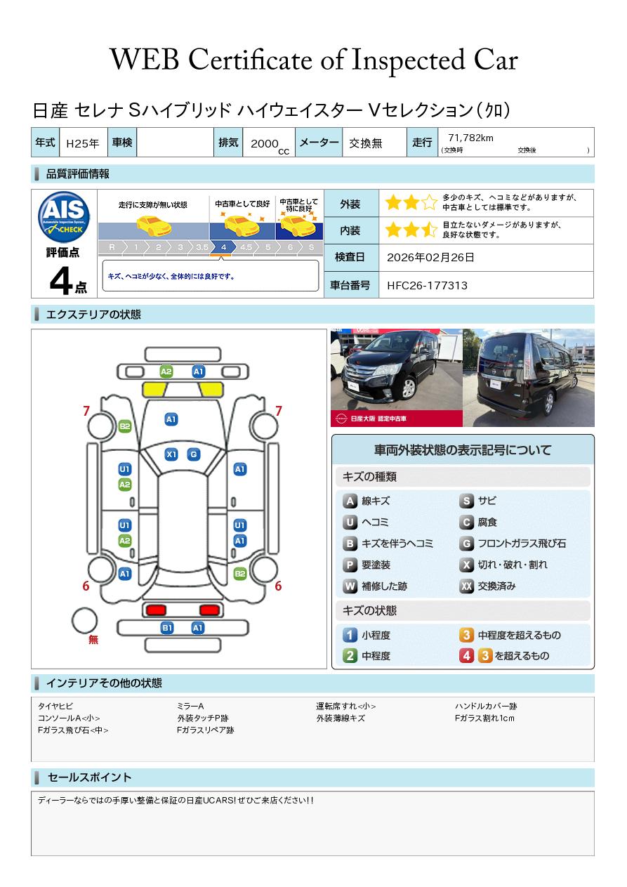 ディーラーならではの手厚い整備と保証の日産UCARS!ぜひご来店ください!!使い勝手の良いセレナです!お値段もお手頃価格ですよ!!