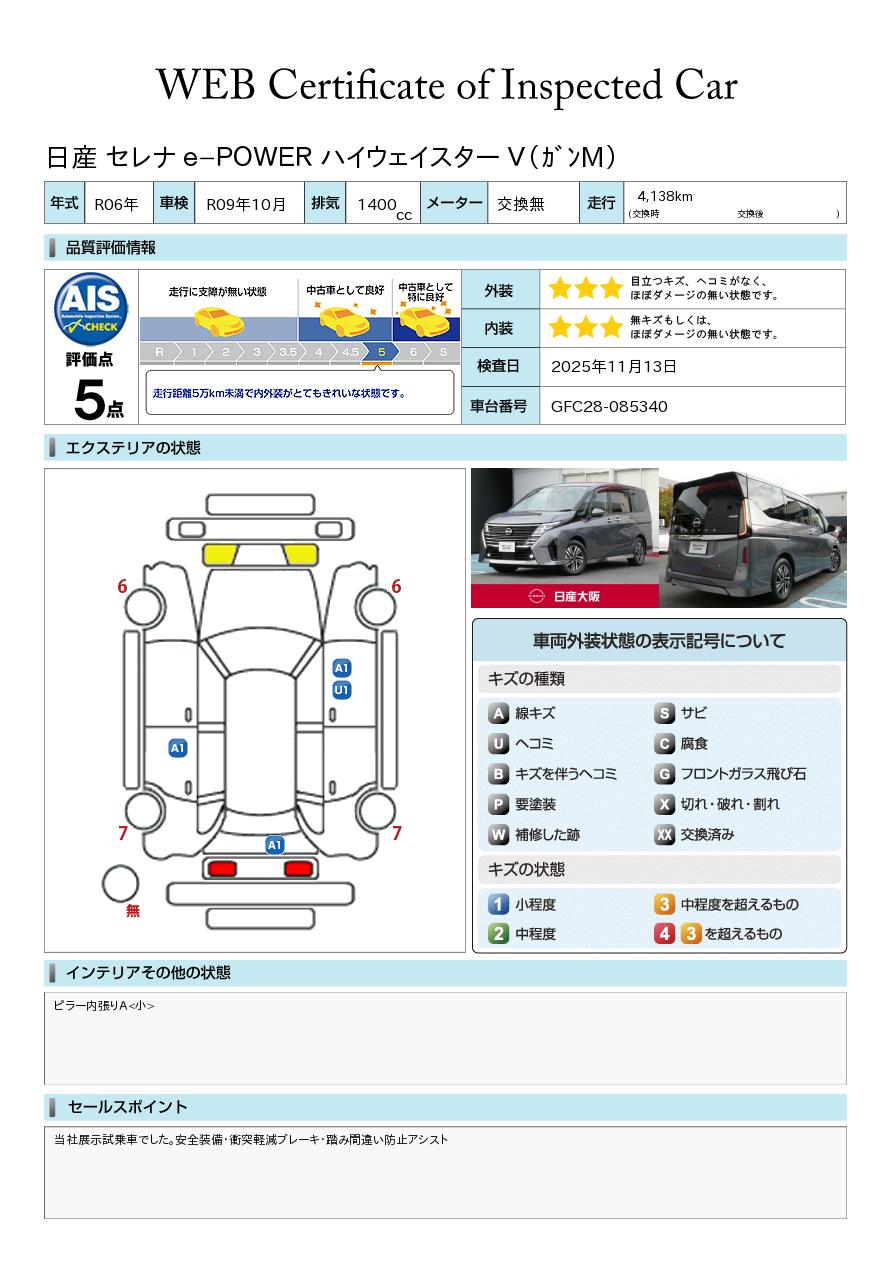 セレナ 1400cc 1.4 e-4ORCE ハイウェイスターV 4WD 防水シート車 メーカーオプションメモリー