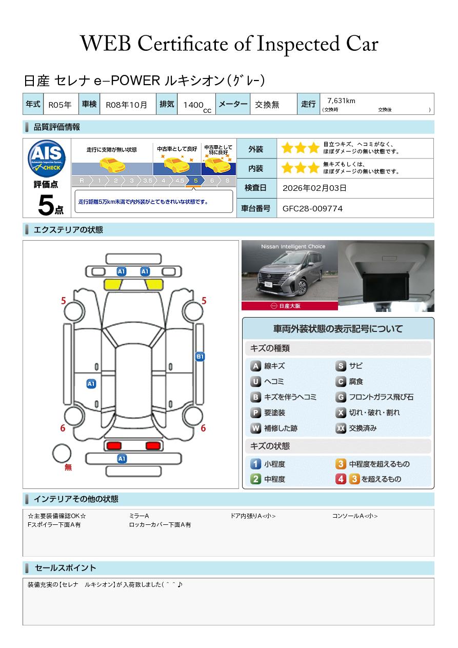 装備充実の【セレナ ルキシオン】が入荷致しました(^^♪お支払い総額は大阪府内での基本お見積もりです。他府県登録も可能ですのでお気軽にお問い合わせください。