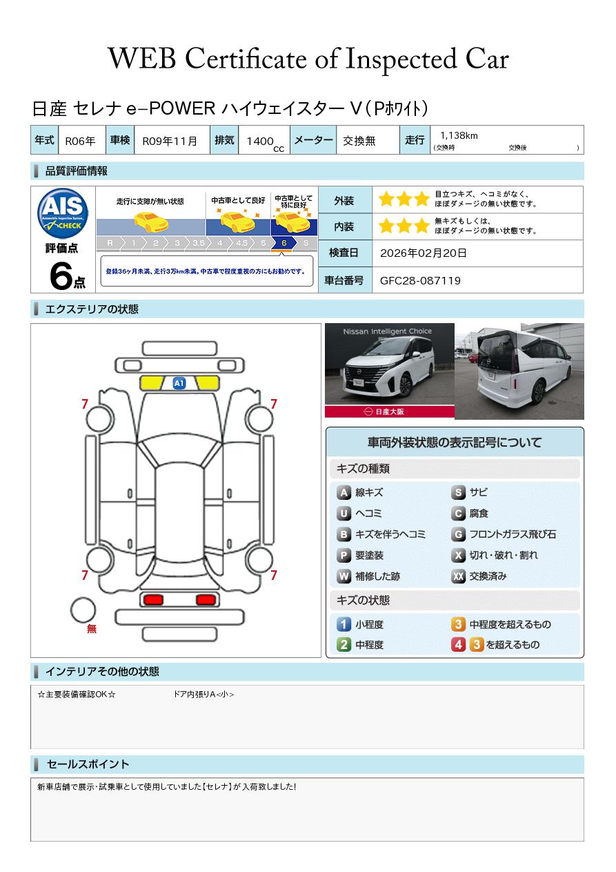 新車店舗で展示・試乗車として使用していました【セレナ】が入荷致しました!お支払い総額は大阪府内での基本お見積もりです。他府県登録も可能ですのでお気軽にお問い合わせください。