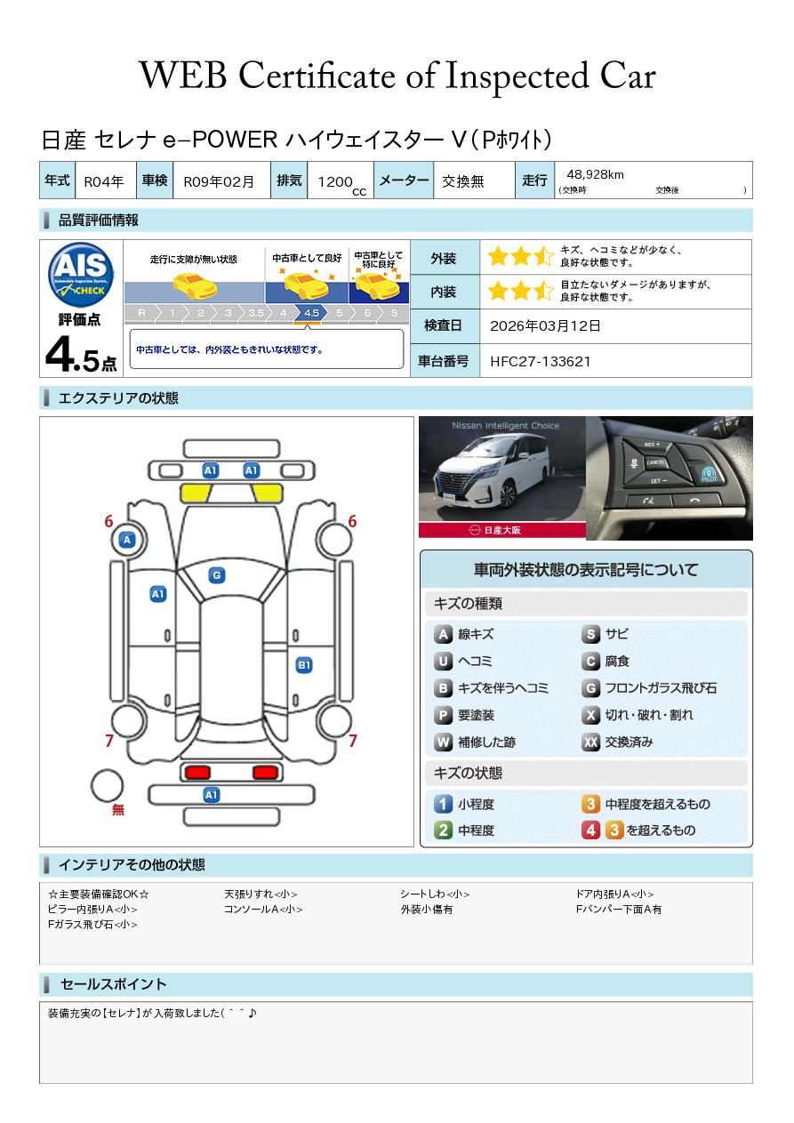 装備充実の【セレナ】が入荷致しました(^^♪お支払い総額は大阪府内での基本お見積もりです。他府県登録も可能ですのでお気軽にお問い合わせください。
