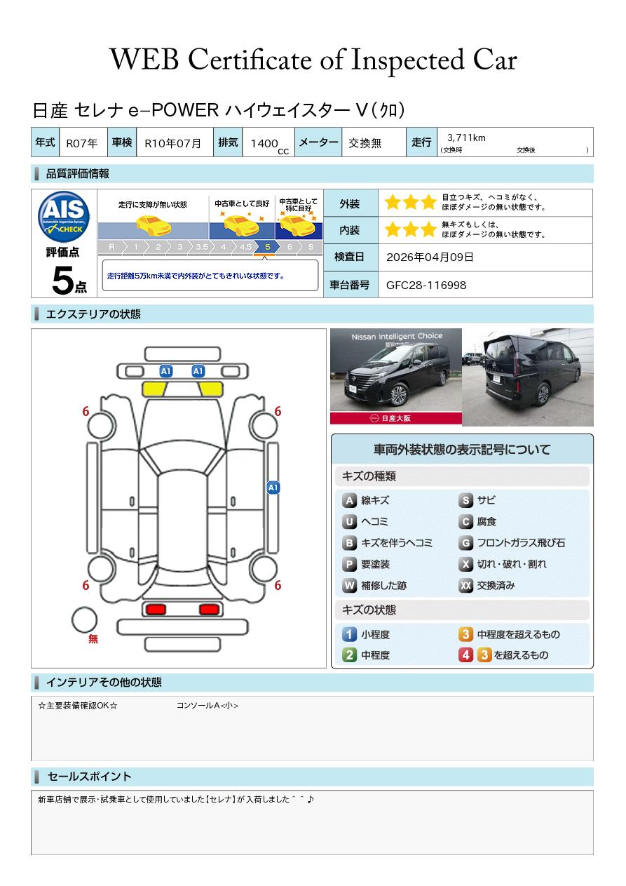 新車店舗で展示・試乗車として使用していました【セレナ】が入荷しました^^♪お支払い総額は大阪府内での基本お見積もりです。他府県登録も可能ですのでお気軽にお問い合わせください。