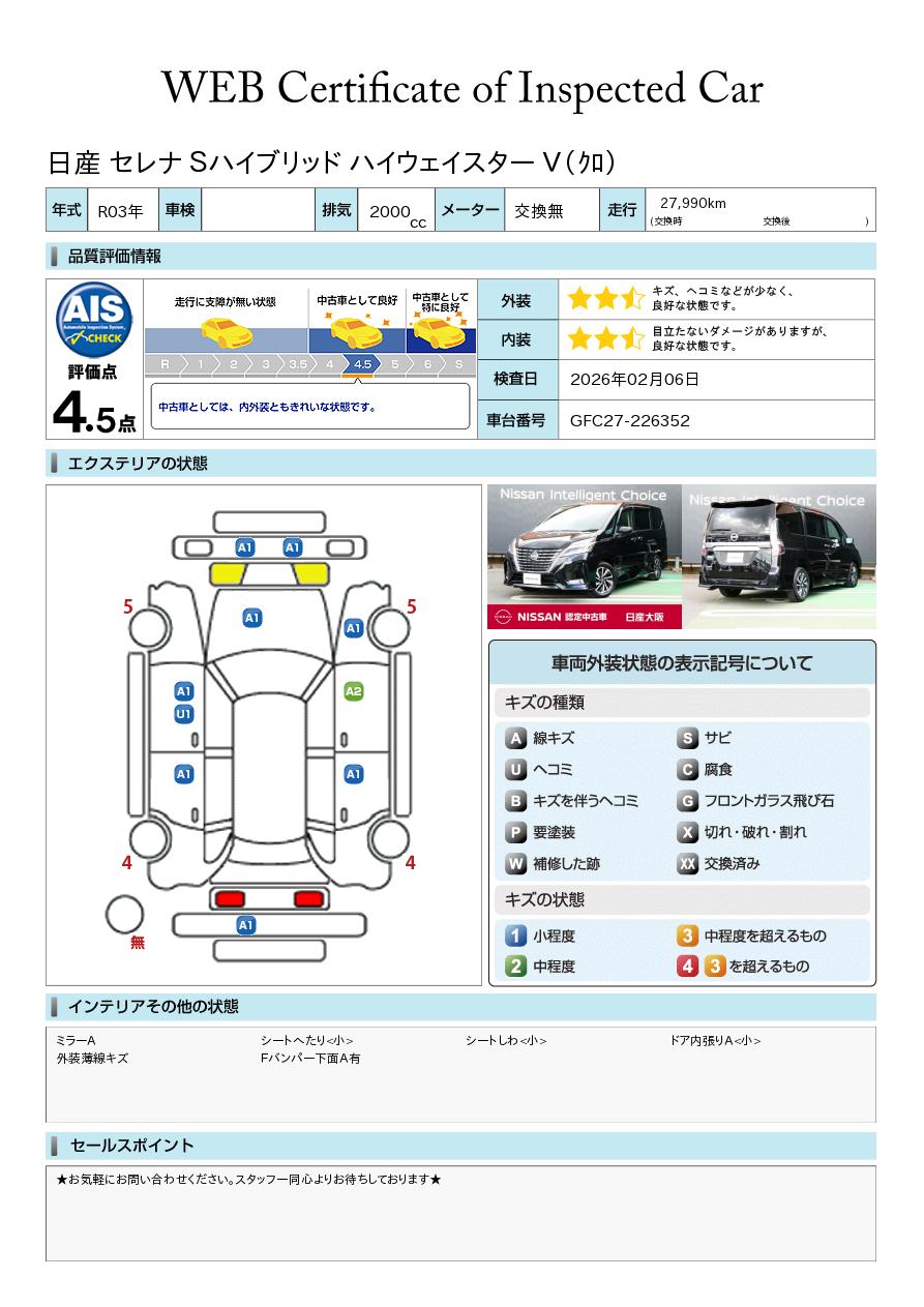 現状括弧書き内の年月まで車検有効期限が残っていますが、ご成約時に新しく車検を取り直します。なお取り直しの費用は車両価格に含まれています。