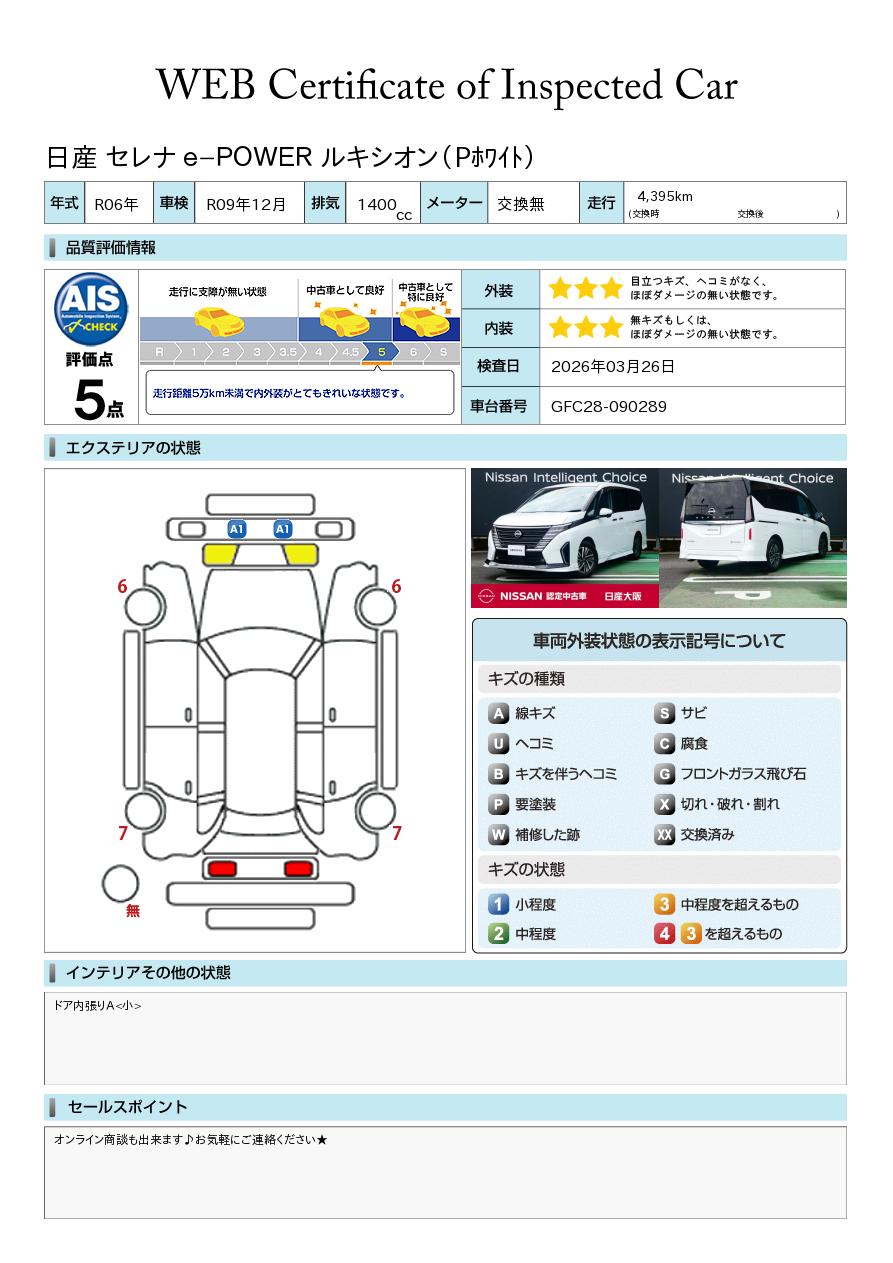 「車両状態証明書」は、査定協会監修のプロの検査員が公正かつ確かな基準で検査した”安心の証”です。