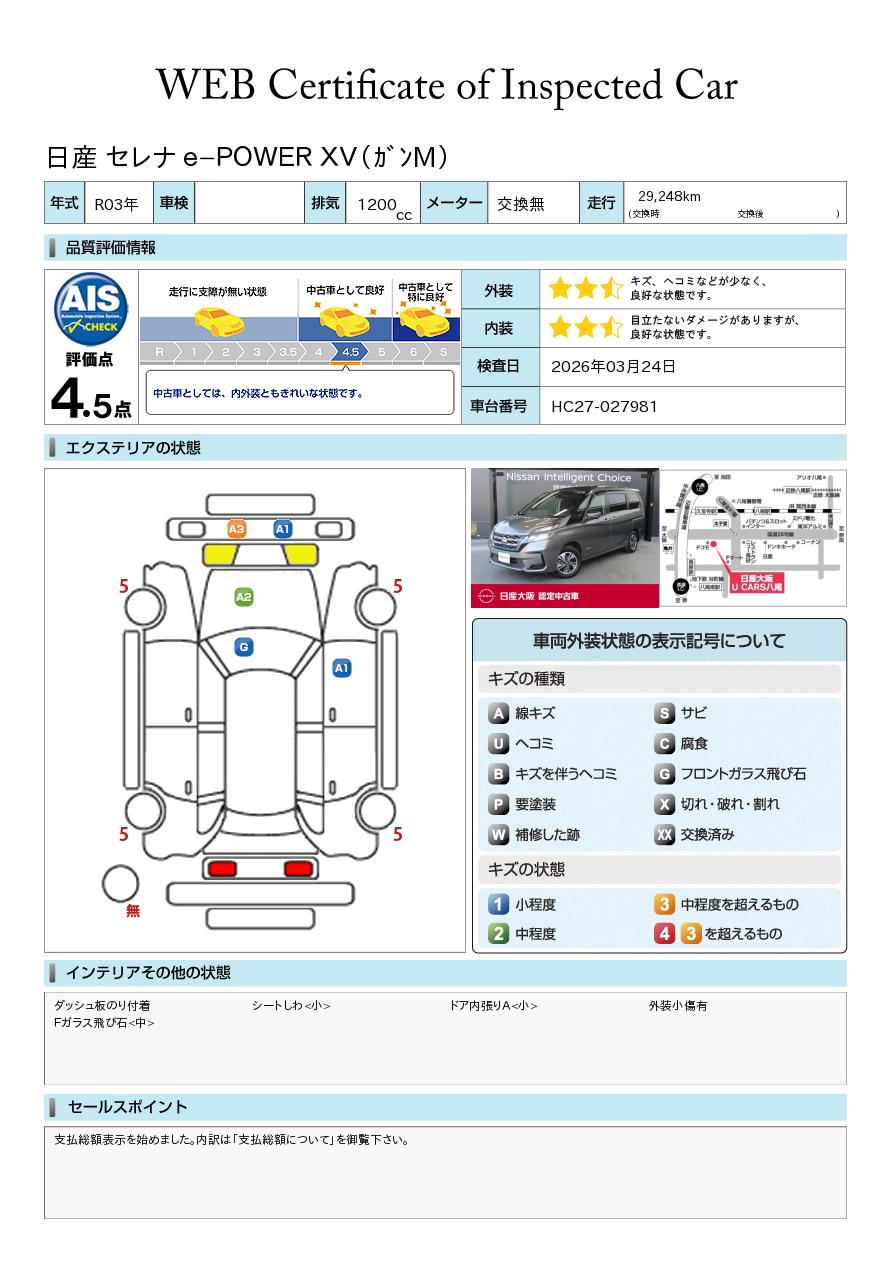 セレナ 1400cc 1.4 e-4ORCE ハイウェイスターV 4WD 元試乗車 ナビ アップルカープレイ