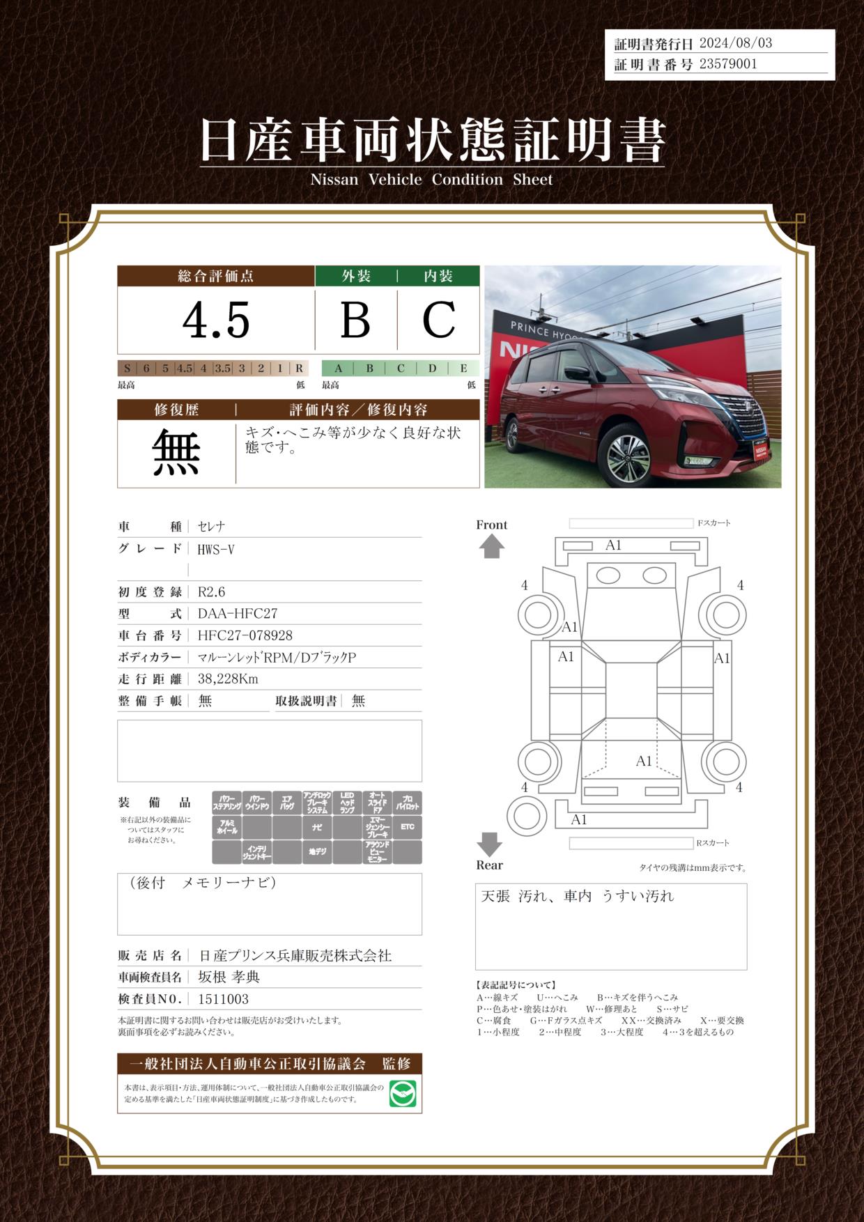 セレナ 2000cc 2.0 ハイウェイスター V プロパイロット・セーフティパックB