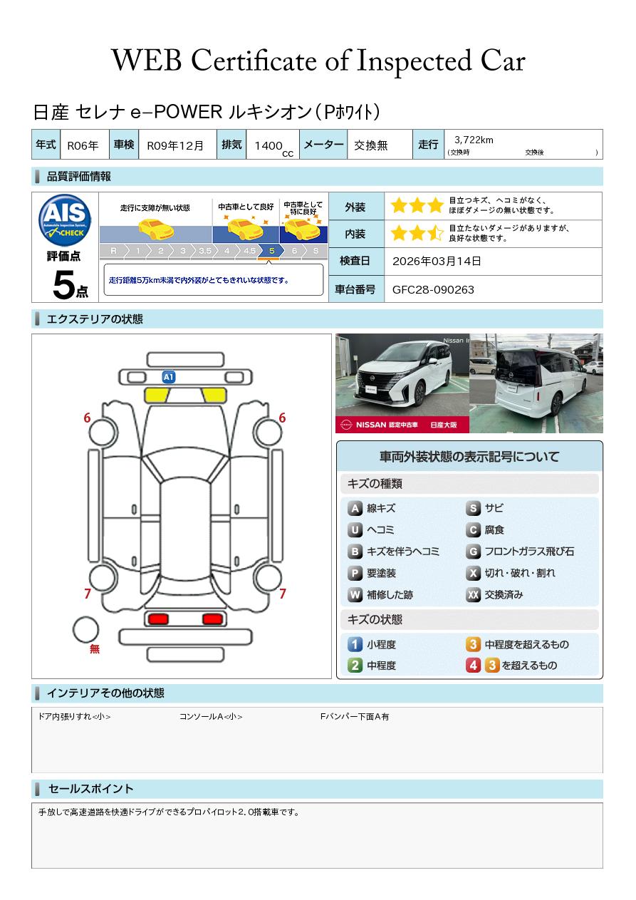 「車両状態証明書」は、査定協会監修のプロの検査員が公正かつ確かな基準で検査した”安心の証”です。