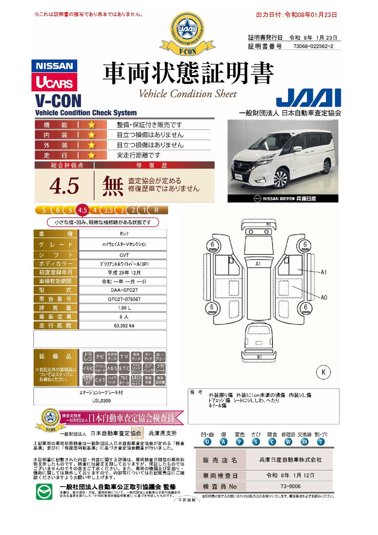 現状括弧書き内の年月まで車検有効期限が残っていますが、ご成約時に新しく車検を取り直します。なお取り直しの費用は車両価格に含まれています。