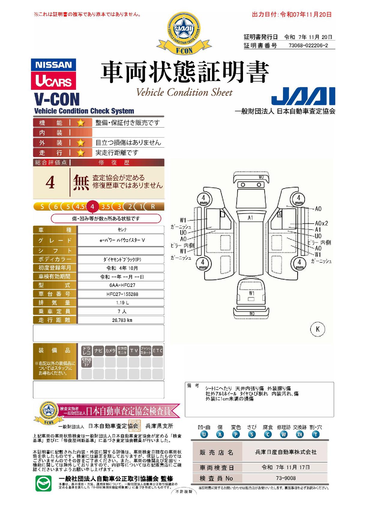 現状括弧書き内の年月まで車検有効期限が残っていますが、ご成約時に新しく車検を取り直します。なお取り直しの費用は車両価格に含まれています。