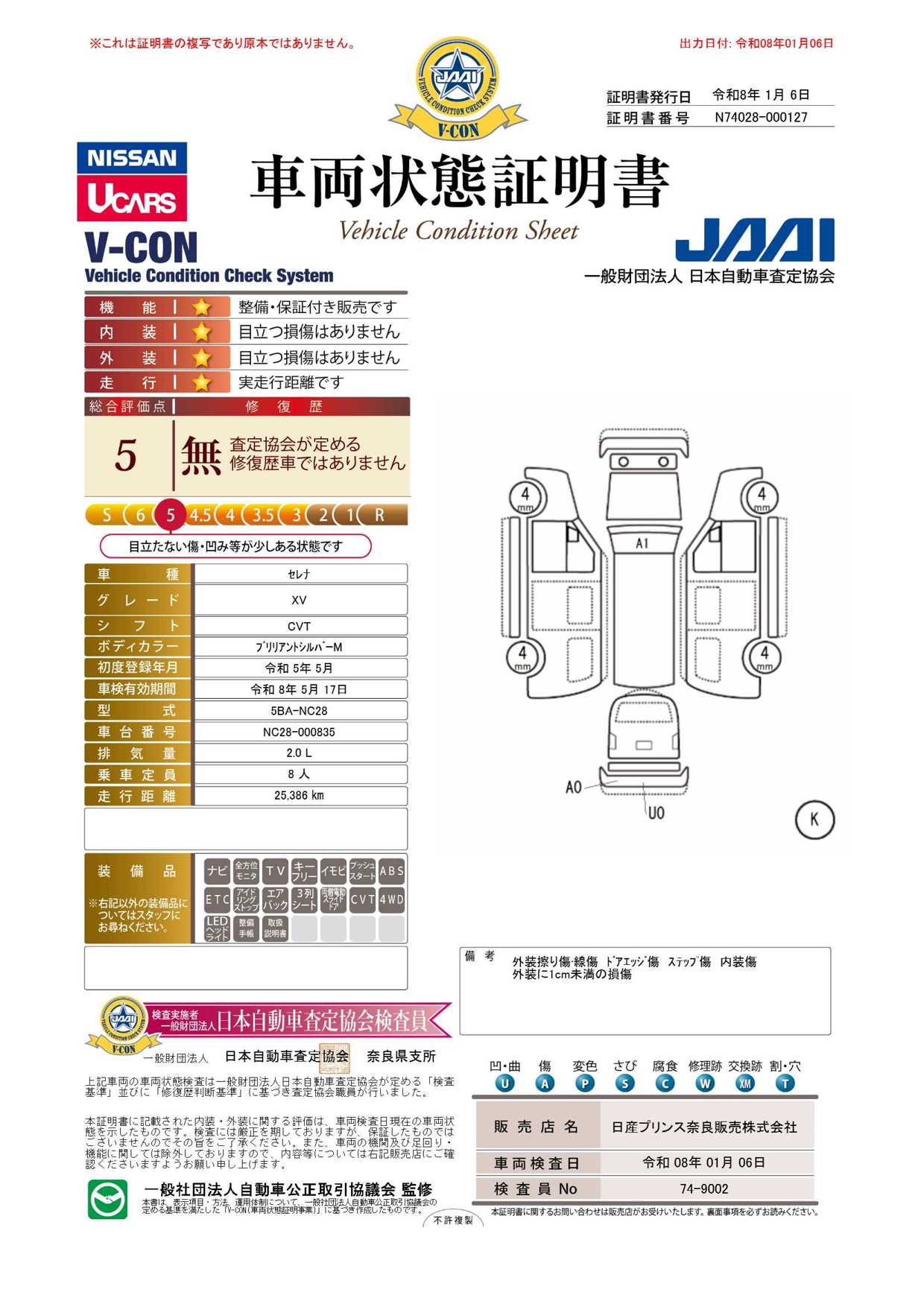 現状括弧書き内の年月まで車検有効期限が残っていますが、ご成約時に新しく車検を取り直します。なお取り直しの費用は車両価格に含まれています。