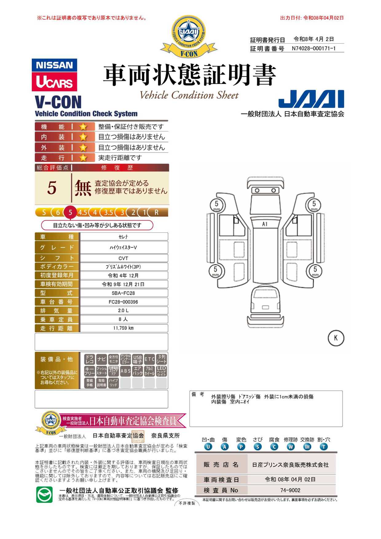 「車両状態証明書」は、査定協会監修のプロの検査員が公正かつ確かな基準で検査した”安心の証”です。