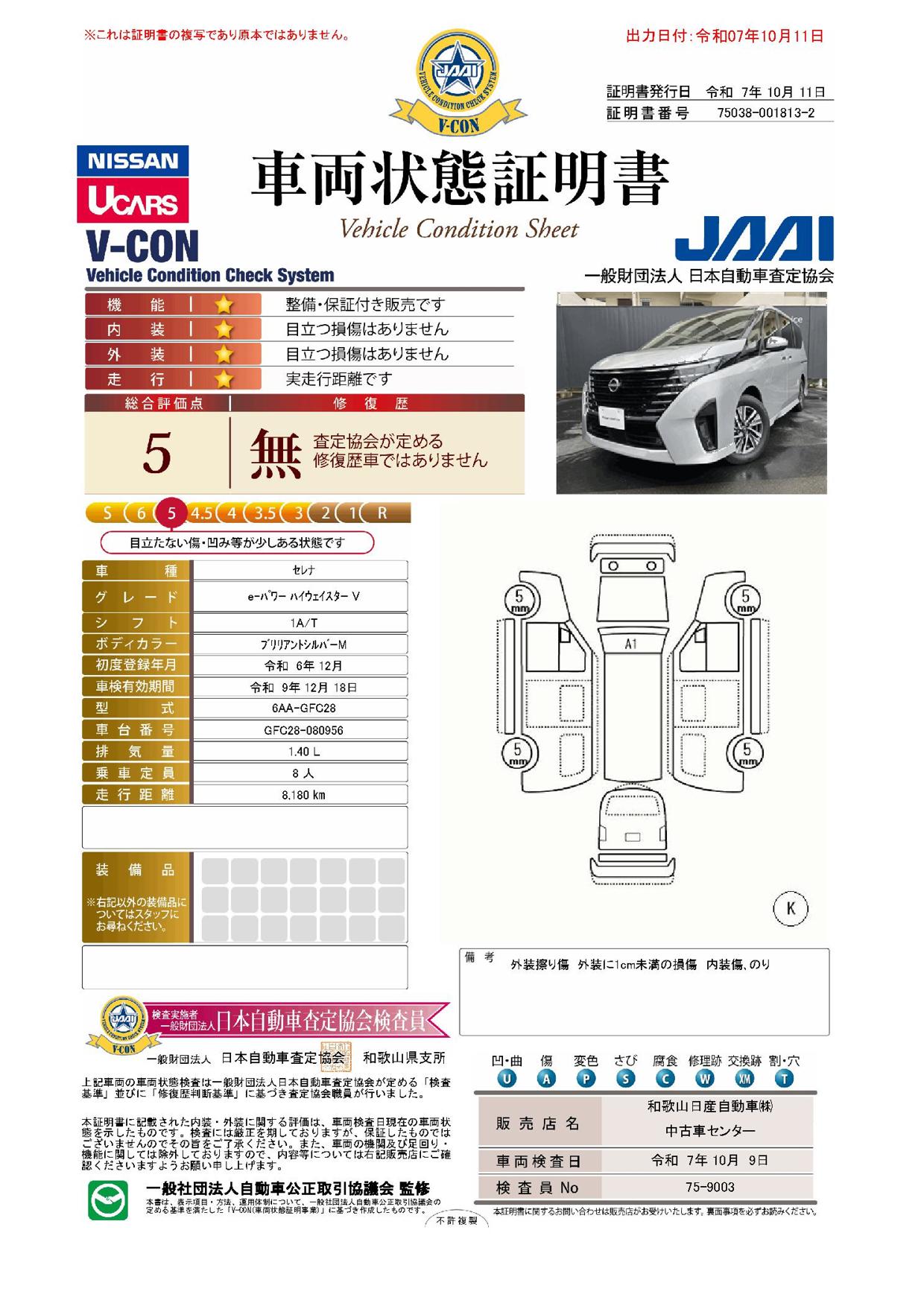 車両状態証明書を見る