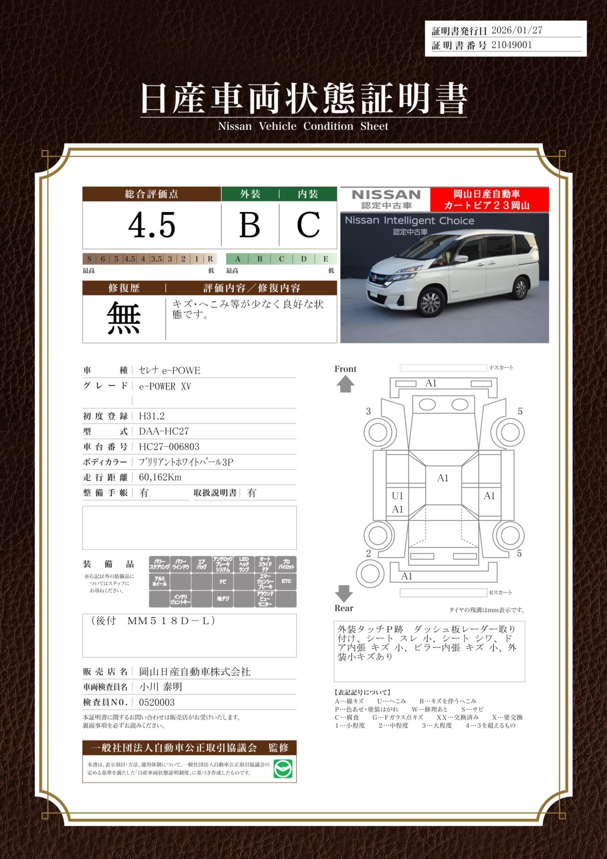 ◆日産認定中古車◆正規ディ-ラー整備工場完備ですので、ご購入後のメンテナンスもしっかりサポ-ト!『安心の全国日産ワイド保証』付き★全国納車も大歓迎★お気軽にご相談ください!